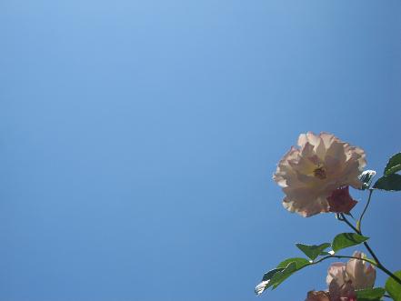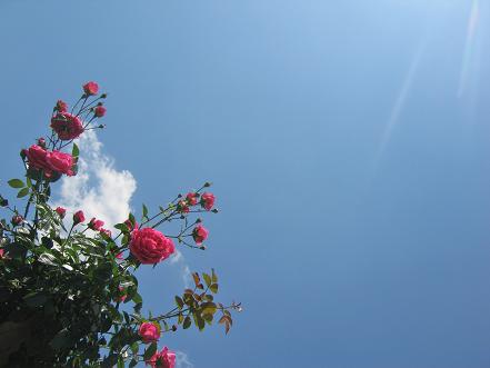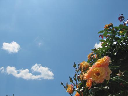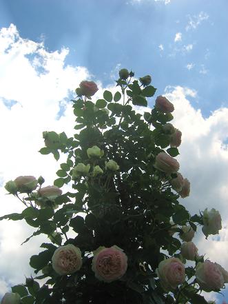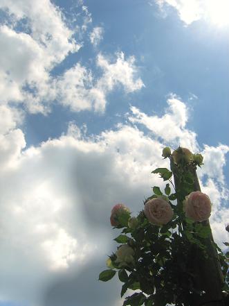 薔薇の名前が「恋心」(ケッ!)、だったから、敢えて上を向いて憧れているような満開状態のものを小さくバックに。