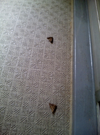 そういえば敢えて忘れていましたが、うちのベランダへの出口のところに敷いてある敷物の下に、蛾の子供が1匹「ある」はずです。