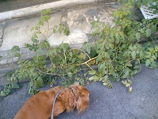 以前、取り上げた、『ちょび』助との散歩途中にある、忽然とオバアサンが居なくなって空き家になった家の前から、コンクリートを割ってすくすくと育っている雑草。