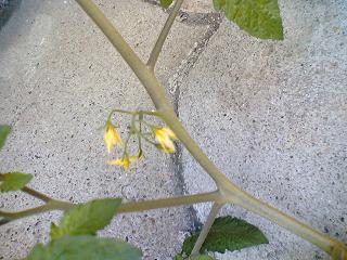 おそらく、鉢植えの棚から落ちた種が、コンクリの隙間に入って根付いてしまった?