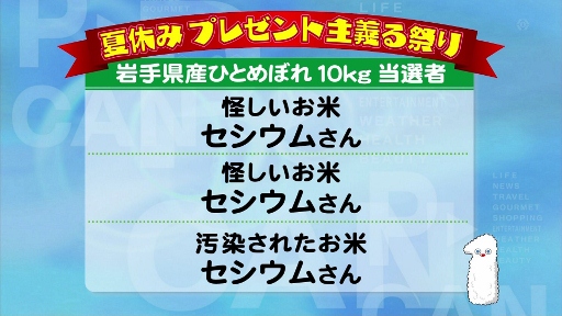 因みに、セシ○ムさんとかセ○ウム米とか誤解されているむきもありますが、右下のはTV局のマスコットです。