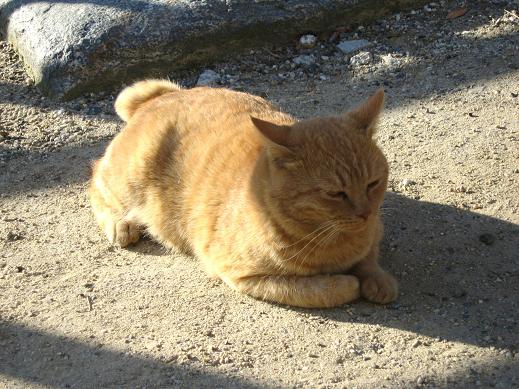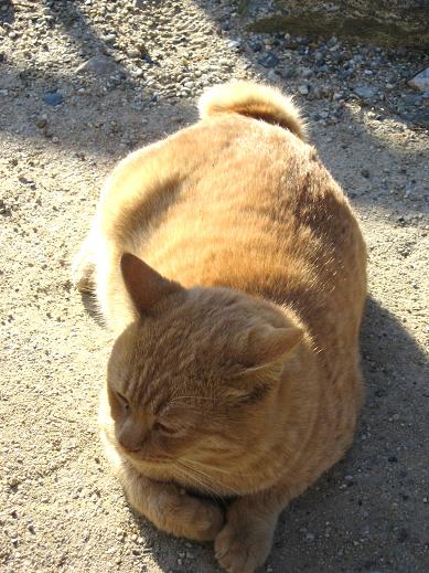 ニャンコ先生は、人が居ても飽くまでマイペースで日向ぼっこをしたり、差し出す観光客の手でウザそうに撫でられたりしている。