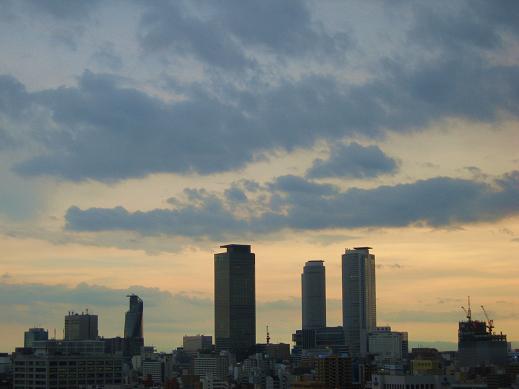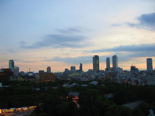 天守閣に上って、そこから夕暮れの風景を、我が家の方向に向かってパチリ。