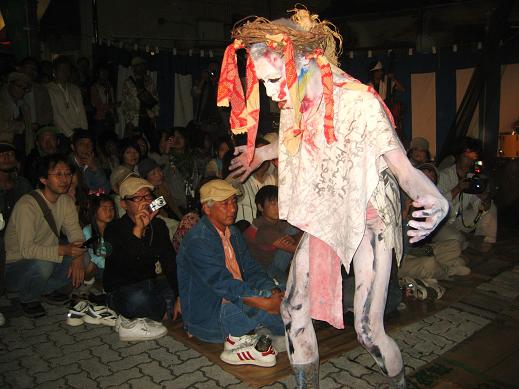 ↑ コノヒト・・・夜の演目「物の怪曼荼羅」に出てたけれど、お祭りと云うこともあって朝からこの格好で一日中商店街を徘徊していても、何の違和感もなかったし(マテ)。