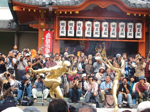 夜は、昨夜のようにO~SU境内で演じるが、午後三時にもう一度、今度は商店街でショーをやる予定だ。