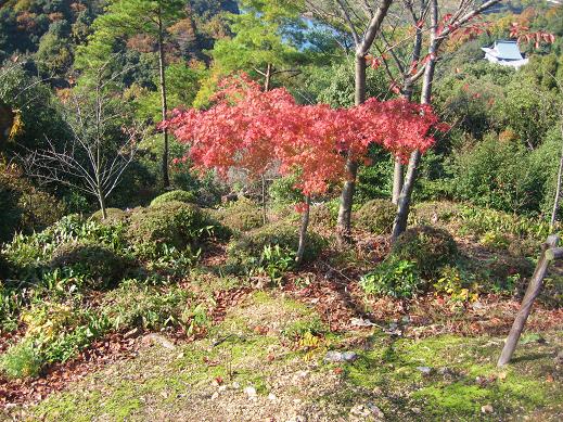 ↑ 目的地の寂光院に行く途中で見かけた紅葉。
