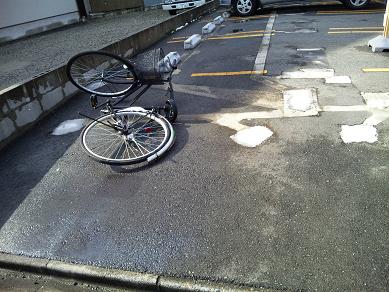 途中、空っぽの駐車場で倒れたまま放置されていた自転車があった。