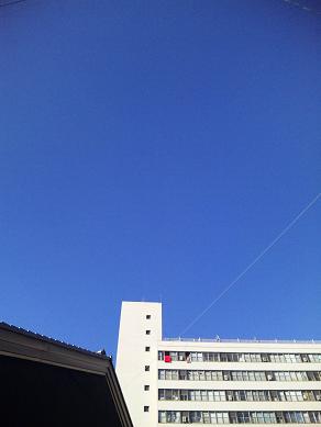 今朝も、『ちょび』助の散歩中に、ふと空を見上げたら雲一つない晴天。