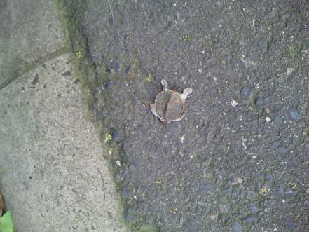 これは、先週の金曜日に昼食に出かけたときに見つけた、小亀の死骸。