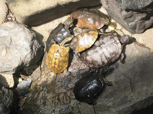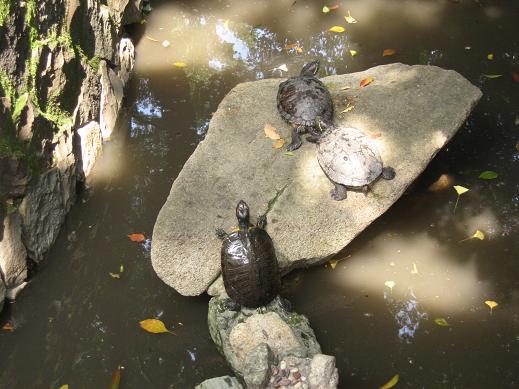 池には吃驚するくらいたくさんの亀が折り重なって生息しています。